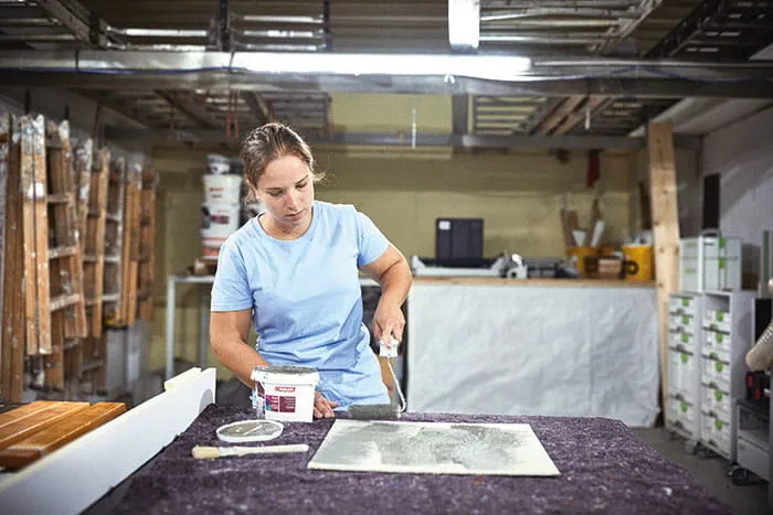 Michael Laiminger ne tarit pas d'éloges sur les outils Festool : « Nous avons des ponceuses et des abrasifs pour chaque application ou type de surface spécifique. Que ce soit sur le chantier ou à l'atelier, nous utilisons toujours un aspirateur pour le ponçage. Et grâce à nos outils sans fil, nous sommes extrêmement flexibles et mobiles. » Il évoque également un autre avantage lui paraissant tout aussi important : les prestations Festool Service. Il y a peu de temps, le chef d'entreprise a lui-même endommagé sa scie à onglets radiale. « Le même jour, j'ai fait directement une demande de réparation en ligne pour ma machine. Le transporteur est venu la chercher un jour plus tard et au bout de cinq jours, je l'ai récupérée en parfait état. Je suis souvent fasciné par la rapidité et l'efficacité des processus lors des réparations et des commandes de pièces détachées ou d'accessoires », nous dit-il avec enthousiasme. Il ajoute : « Car il n'y a rien de pire pour un artisan que de se retrouver sans outil. »