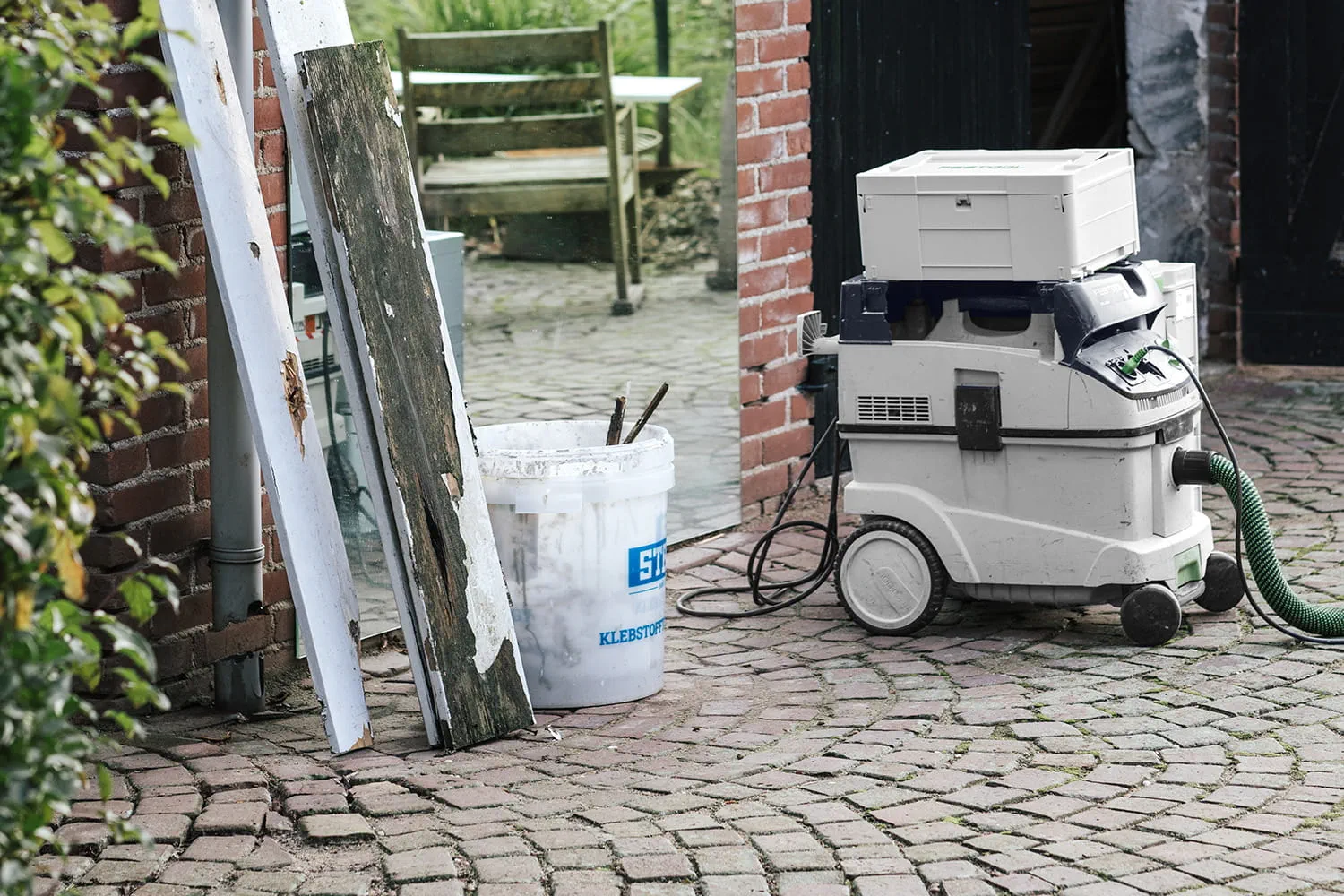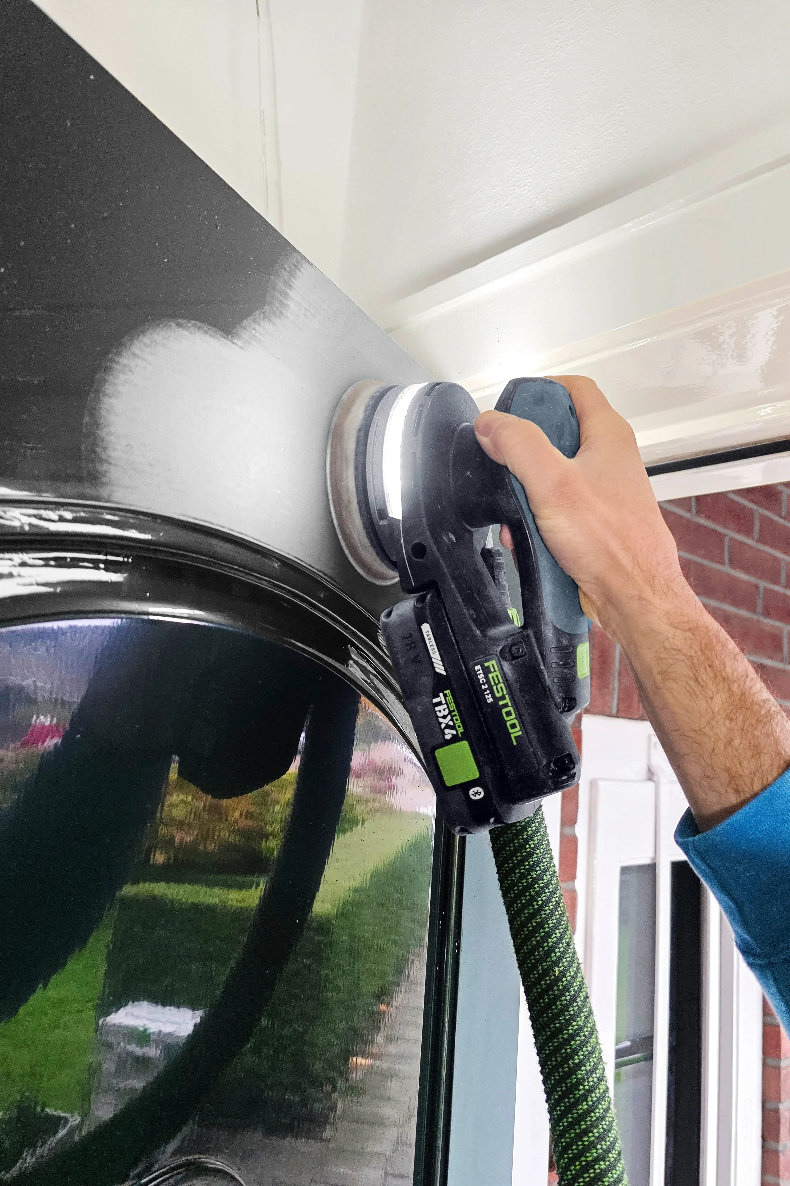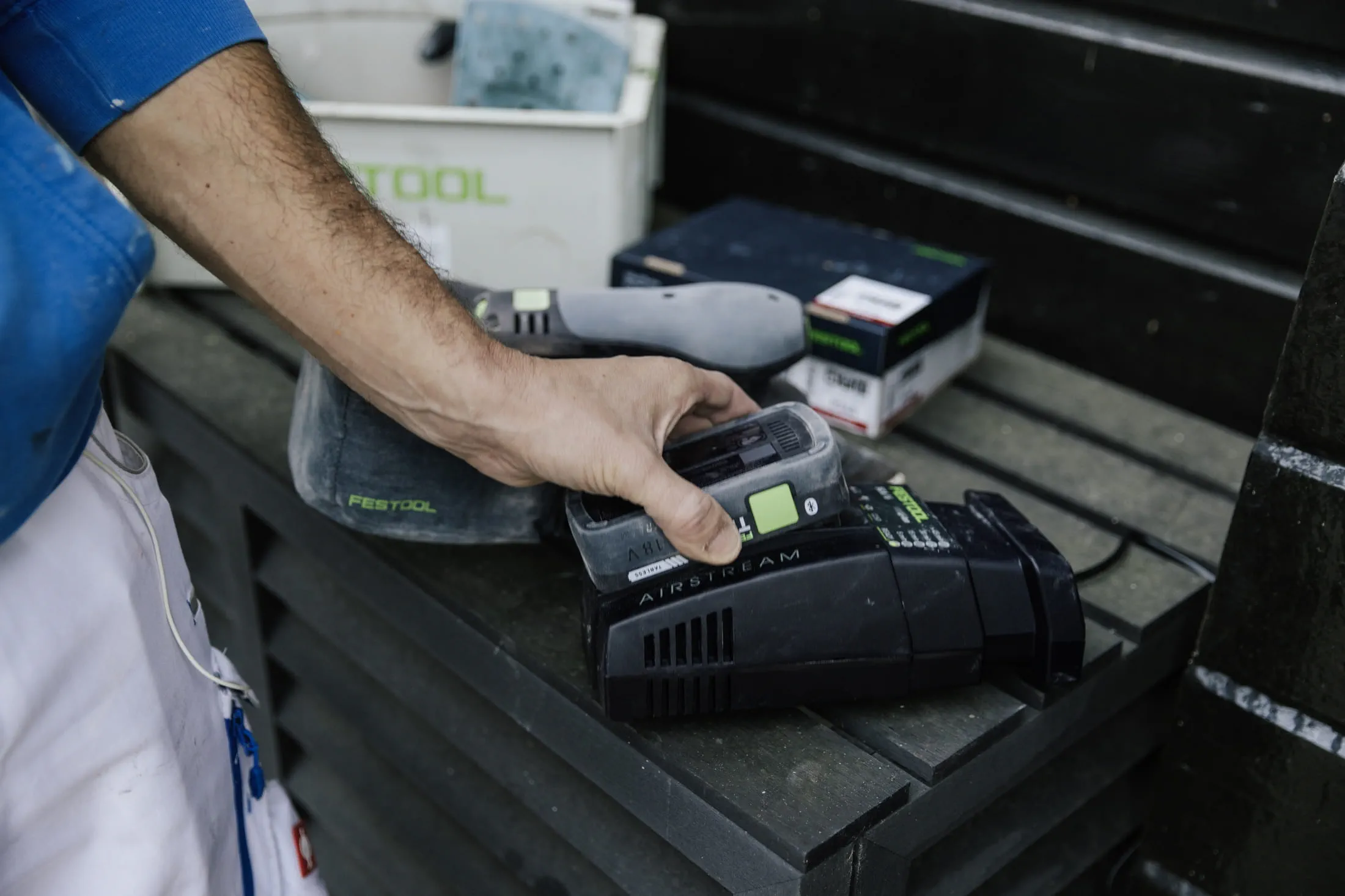 Le peintre hollandais Luke de Jager ponce beaucoup. Avec différentes ponceuses sans fil Festool et toujours avec une aspiration de la poussière. Souvent pendant des jours. Par tous les temps.