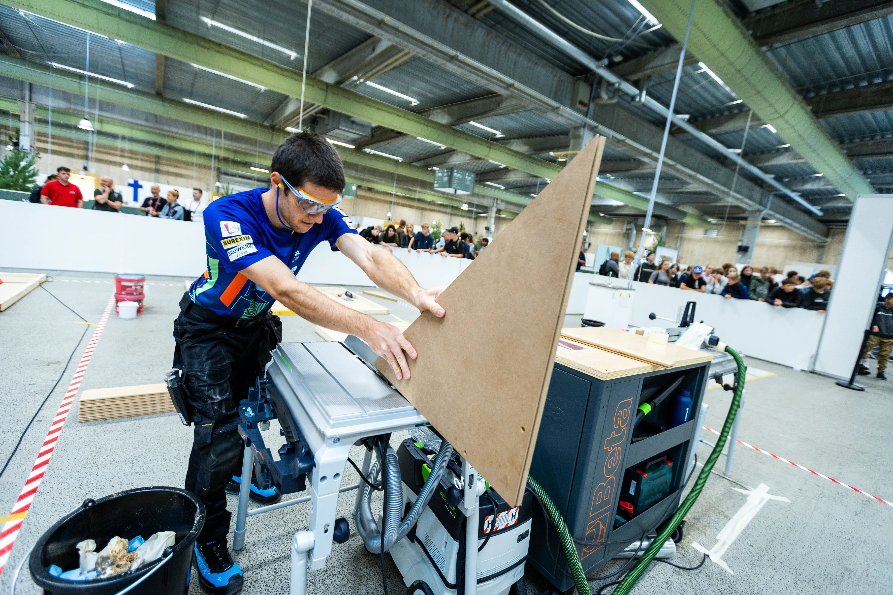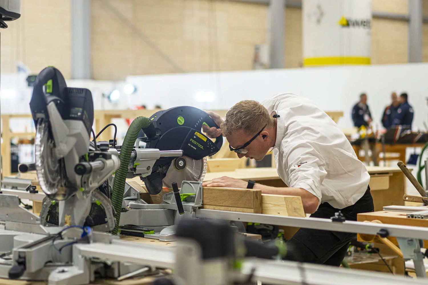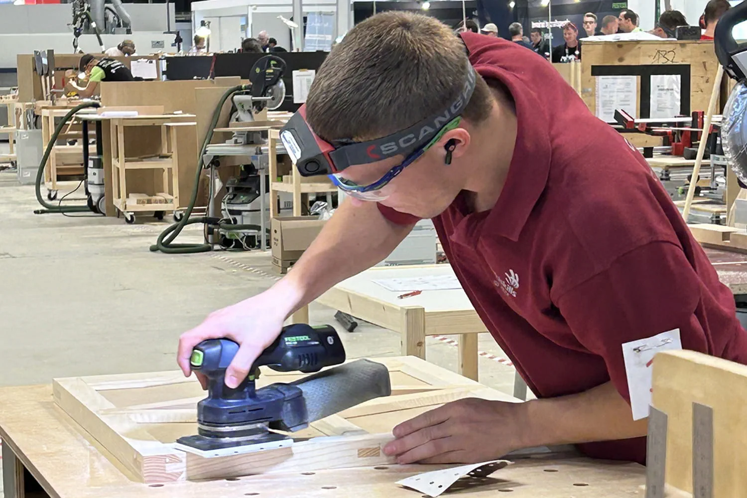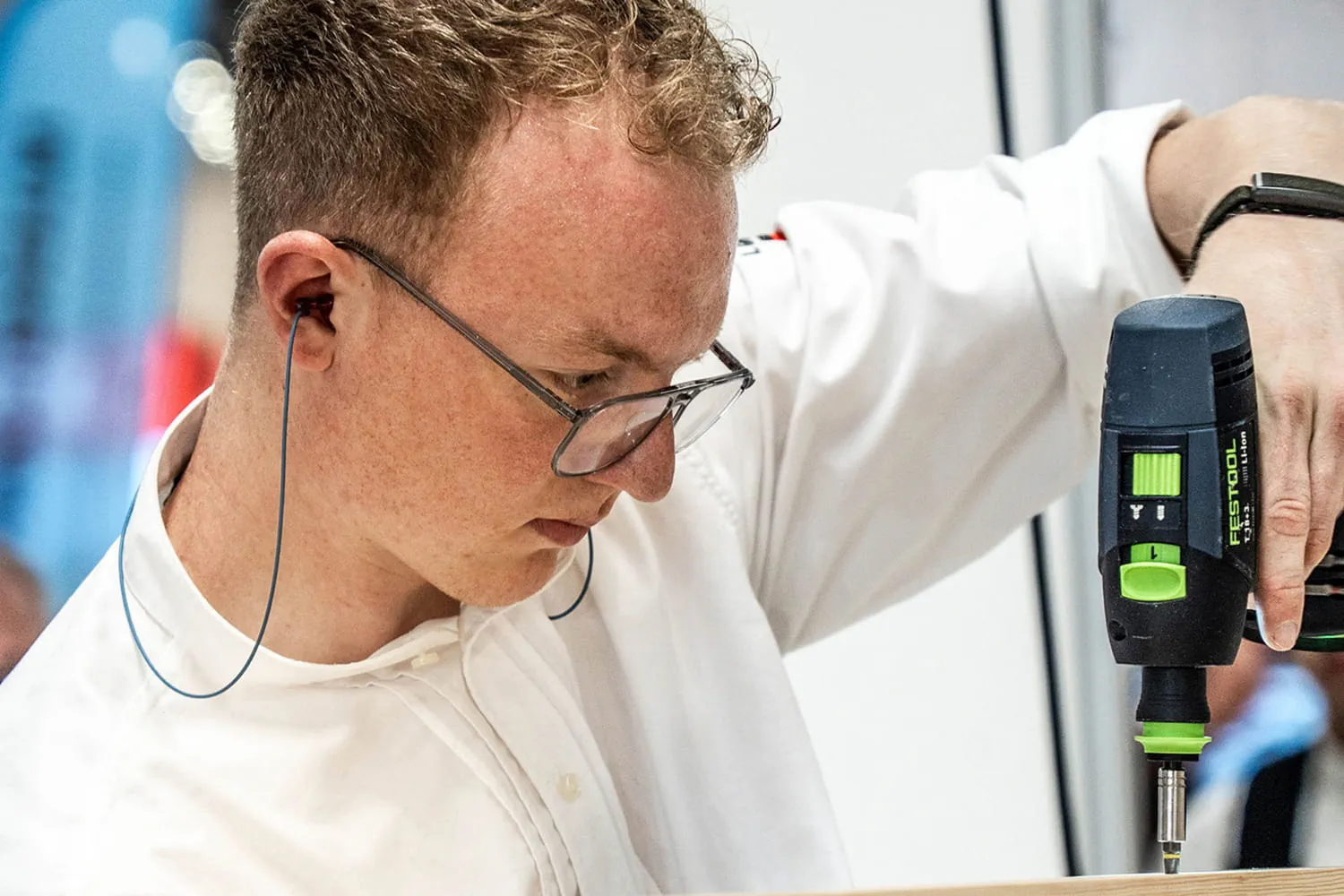 Lorsque les portes des salles de compétition s'ouvrent à Herning, au Danemark, lors des EuroSkills, on est immédiatement plongé dans un autre monde : L'adrénaline est dans l'air, les visages des participants montrent une concentration maximale. S'y ajoutent le vrombissement rythmé des machines et l'odeur du bois et de la sciure. L'artisanat et le talent se concentrent ici sur quelques mètres, pendant lesquels les participants réalisent des projets très ambitieux à la sueur de leur front et dans un temps imparti. Seuls leurs outils électriques sont à leurs côtés. Des aides indispensables sur le chemin du podium.