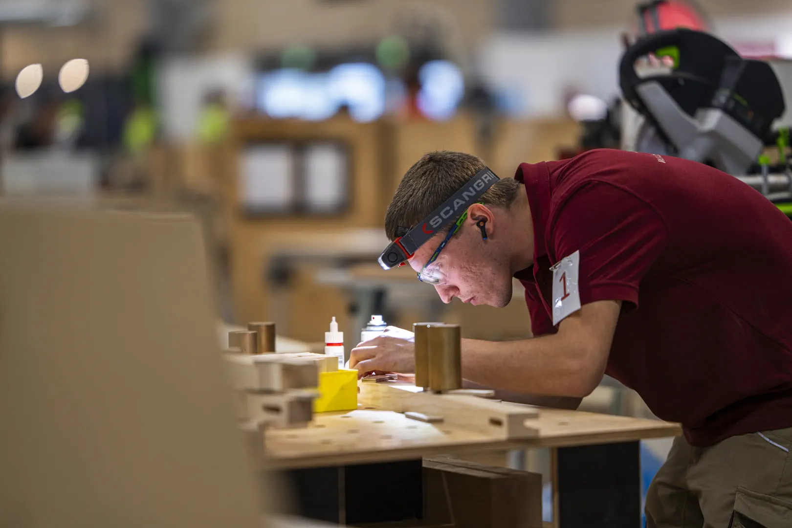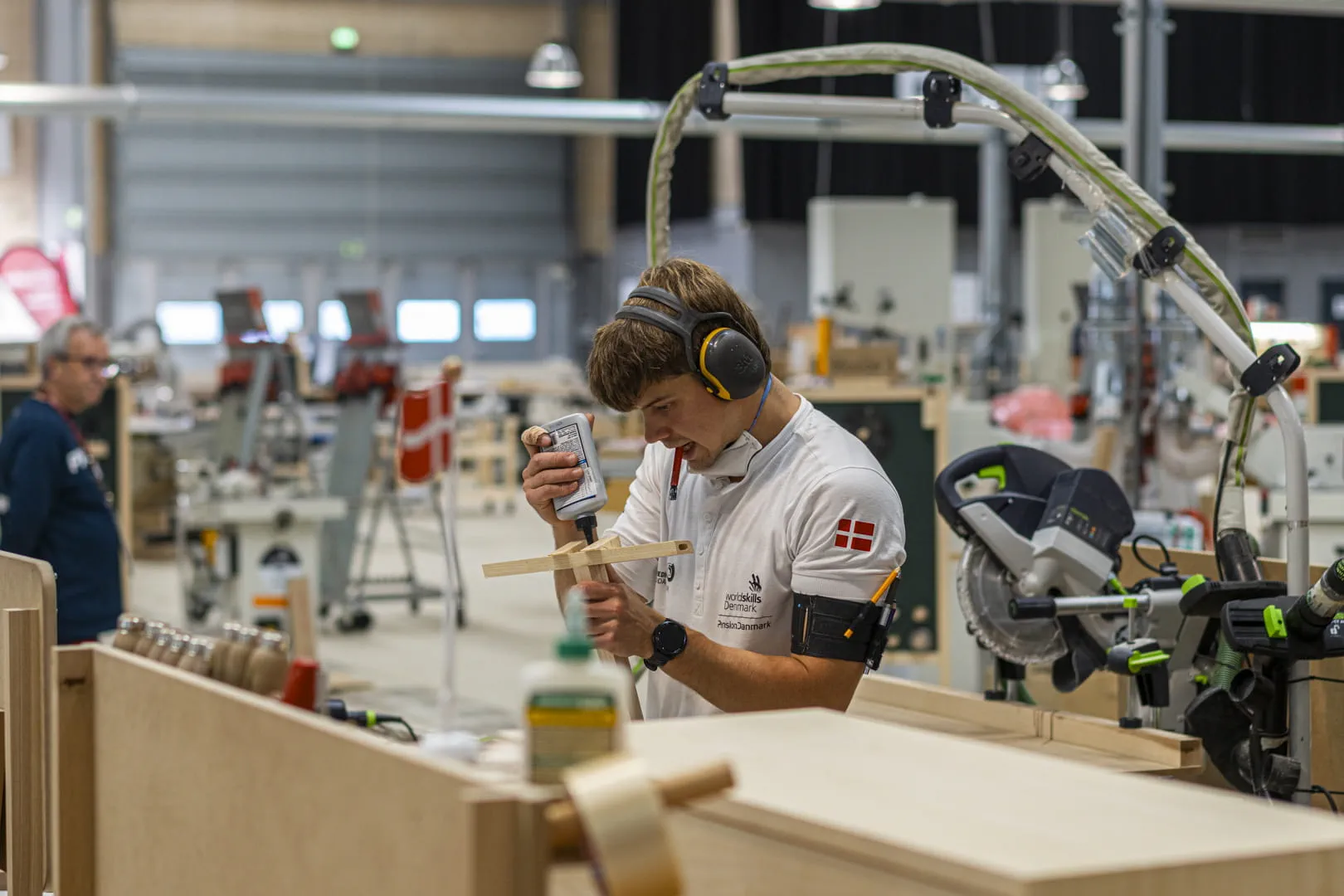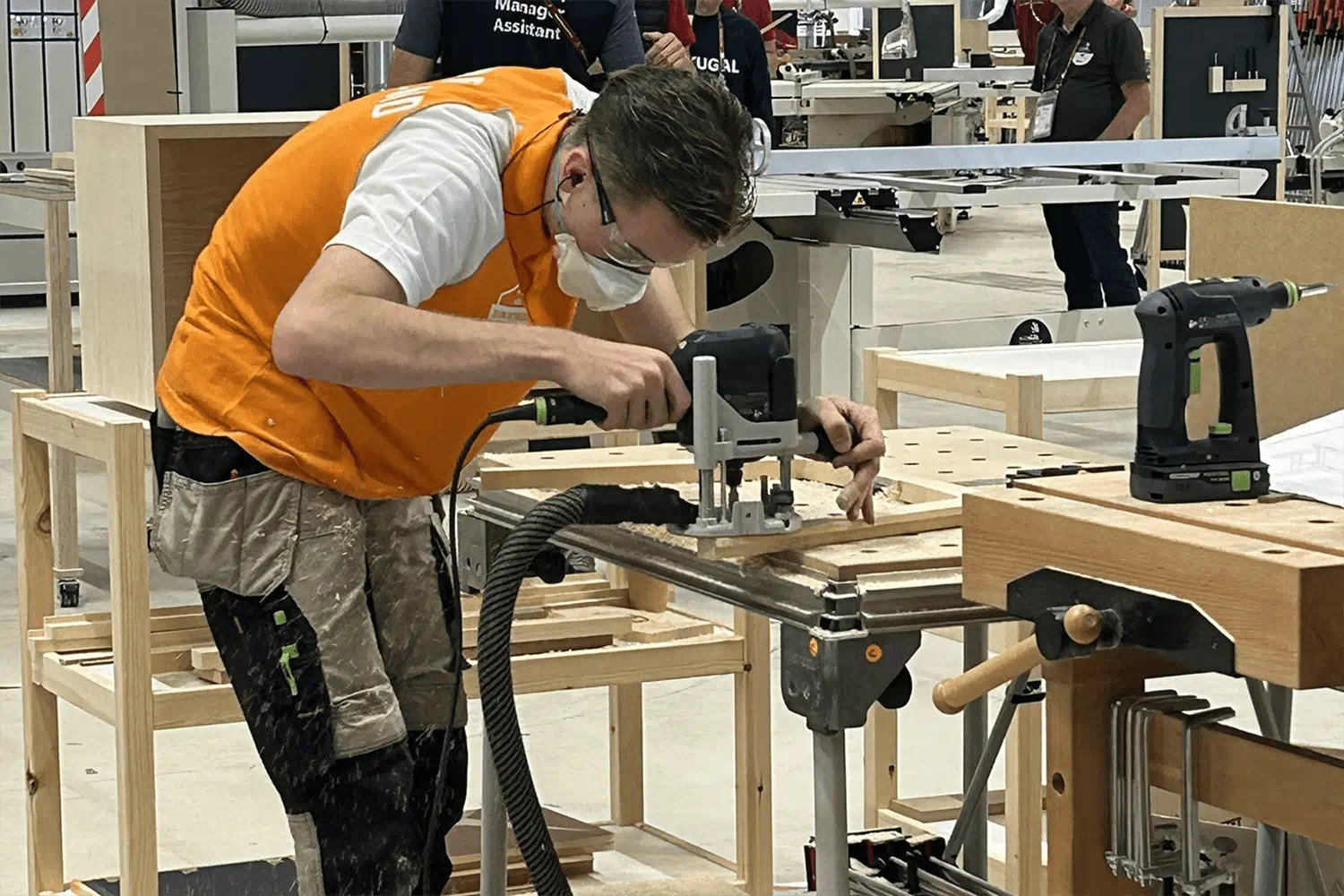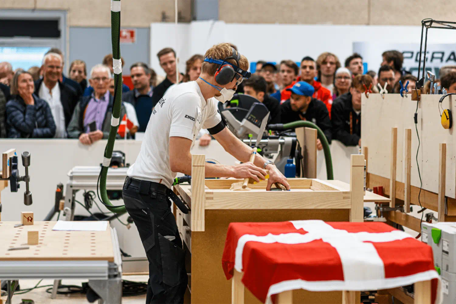 Lorsque les portes des salles de compétition s'ouvrent à Herning, au Danemark, lors des EuroSkills, on est immédiatement plongé dans un autre monde : L'adrénaline est dans l'air, les visages des participants montrent une concentration maximale. S'y ajoutent le vrombissement rythmé des machines et l'odeur du bois et de la sciure. L'artisanat et le talent se concentrent ici sur quelques mètres, pendant lesquels les participants réalisent des projets très ambitieux à la sueur de leur front et dans un temps imparti. Seuls leurs outils électriques sont à leurs côtés. Des aides indispensables sur le chemin du podium.