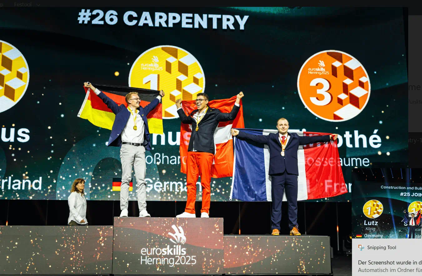 Pour la qualité, pour l'artisanat, pour l'avenir : Festool était fièrement engagée en tant que sponsor premium dans cinq groupes professionnels. Les plus de 103 000 visiteurs, les 600 participants de 33 pays et les 38 groupes professionnels - tout cela a montré : L'artisanat n'a pas de frontières, il est vivant et plein de perspectives. Nous sommes fiers d'avoir participé à cette compétition impressionnante avec tous ses jeunes talents et nous nous réjouissons déjà des prochains EuroSkills 2027 à Düsseldorf et au Luxembourg. Une fois de plus, nous avons eu à cœur d'encourager les jeunes talents et de contribuer à l'avenir de l'artisanat avec nos outils.