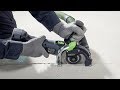 - Le capot d'aspiration permet un travail plus sain : plus de 95 % de la poussière est directement captée vers l'aspirateur, idéal pour le tronçonnage de matériaux minéraux en intérieur