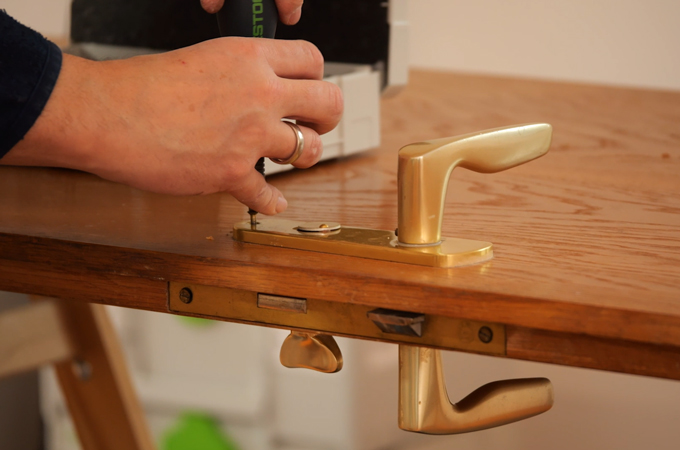 • Après le séchage, la quincaillerie est remise en place sur la porte. Pour ce faire, vous pouvez à nouveau utiliser le kit de cliquet. La porte est alors terminée et vous pouvez passer au projet suivant.