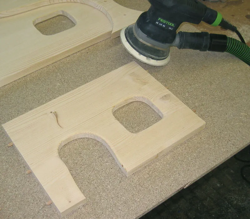 Poncer chaque chant et l'arrondir avec une défonceuse ou à la main. Poncer les surfaces avec une ponceuse excentrique ou à la main.