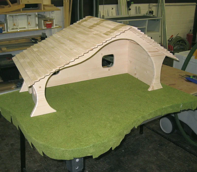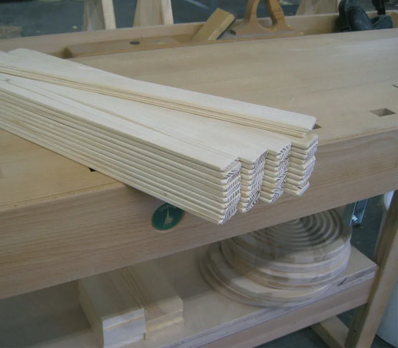 Pendant que la colle sèche, mettre à longueur les baguettes de toit (matériel vendu au mètre) et ébarber les chants.