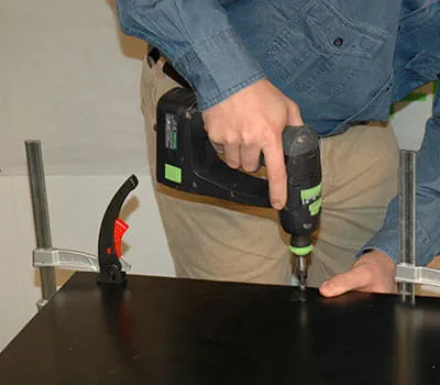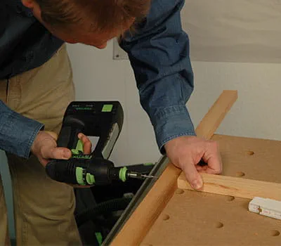Après le vissage des cadres formant la sous-structure, mettez en place les habillages intérieurs (photos 2, 7, 13). Fixez les panneaux avec des serre-joints et percez les trous destinés aux vis. Vissez les panneaux sur la sous-structure avec des vis Spax (3,5 x 20 mm).