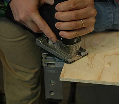 Pour obtenir une arête de coupe précise, réglez la course pendulaire de la scie sauteuse sur la position 1. Avec la scie circulaire sur table, coupez en biseau dans la longueur les baguettes de bordure de toit. Pour les coupes longitudinales dans du bois massif, il est indispensable d'utiliser une lame de scie à grosse denture. Mettez les baguettes à longueur avec la scie circulaire sur table.