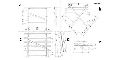 Les assemblages au niveau du châssis s'effectuent au moyen d'« entures à mi-bois ». Cela signifie que l'on évide de moitié chacune des planches pour emboîter par la suite ces dernières l'une dans l'autre. Tracez des repères aux emplacements exacts de ces assemblages sur les pieds (photos 3 + 4) et les renforts (photos 5, 6 + 7).